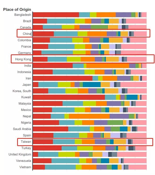 接下来在美留学生人数最多的依次是沙特阿拉伯、加拿大、越南、中国台湾、日本、墨西哥和巴西。