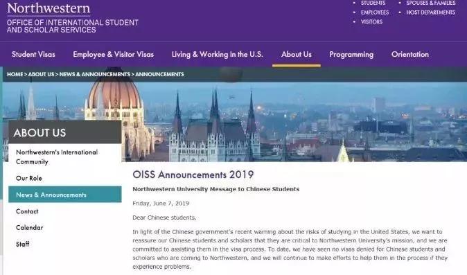 “截至目前为止,没有一名西北大学的中国学生签证被拒,我们将继续努力以保证你们顺利获得签证。”