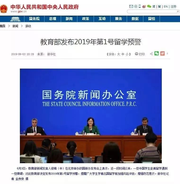 北京时间6月3日下午,教育部发布了第1号留学预警。